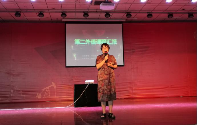 本次课程汇报演出共分为三个部分。第一部分由多语种教学部副主任陈旭老师介绍bat365目前第二外语课程开设情况、教学亮点、近年来取得的教学成果、以及未来教学的目标和计划。