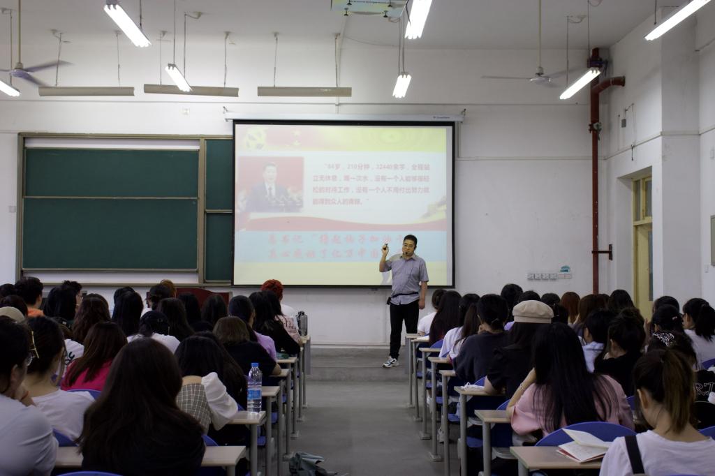 2022年6月14日上午,人文学院党委书记余小勇在鄠邑校区博思楼102教室为学生讲授了题为“回顾党的十九大精神,迎接党的二十大召开”的专题思政课,人文学院全体2021级新闻系和中文系学生参加。