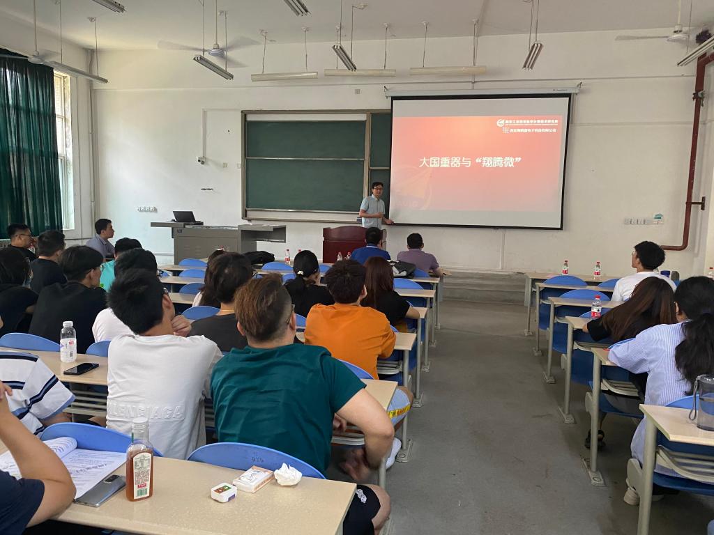 随后,翔腾微电子机载总线网络负责人张荣华从公司科研环境、合作科研基地、服务平台以及主要研发方向等方面向学生做宣讲,对研究生在企业实践中的指导方式和可参与项目做详细解读。