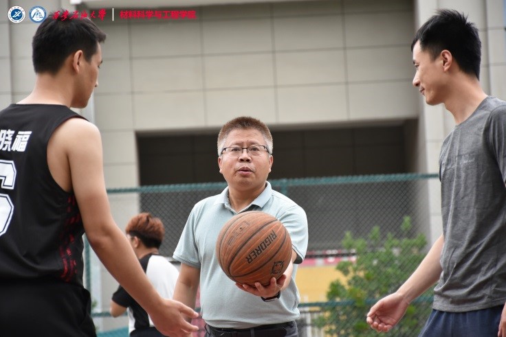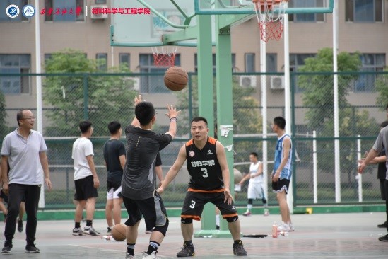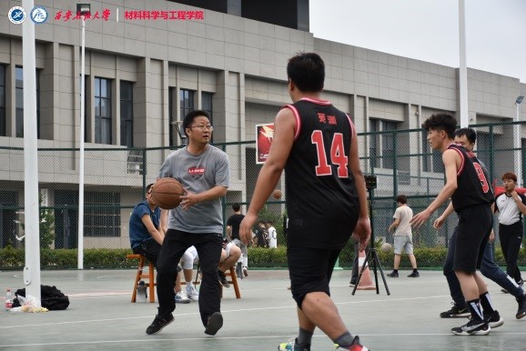 毕业虽将分别,篮球再续师恩。正值毕业季,为欢送2022届毕业生,增进学院师生情谊,表达对毕业生的美好祝愿,营造珍惜离别、感恩母校、健康向上的和谐氛围,材料科学与工程学院于6月7日下午在鄠邑校区篮球场举办了“材料杯”毕业季师生篮球友谊赛。学院院长张骁勇为比赛跳球,教工代表队和毕业生代表队参加了本次比赛,2022届毕业生刘银昊作为主裁判执裁了本场比赛。