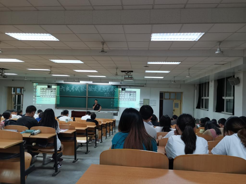 6月10日下午,2020级举办四级经验交流分享会,党委副书记马小刚出席并讲话,全体2020级四级未通过的90余名同学参加,辅导员林晔主持。周椰、胡智杰、韦程溪、凌明等学生代表进行经验分享,为周末应考的同学阐述了平稳考试心态、合理安排时间、快速应对考题等实用性较强的经验。