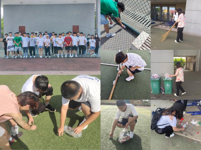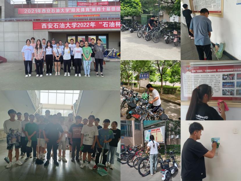 土木工程专业同学走出宿舍,挽起衣袖、拿起工具,在多个运动场地清杂草、捡垃圾,在劳动实践中接受锻炼、磨炼意志、奉献青春,为营造良好的校园运动环境做出一份贡献。