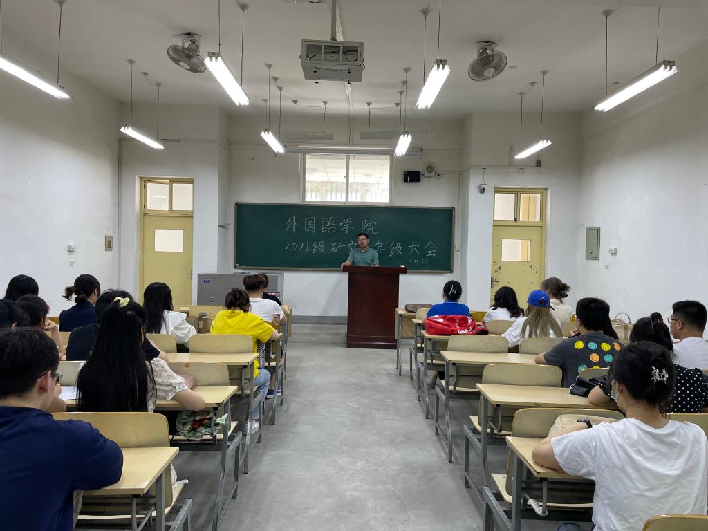 6月1日下午,外国语学院在鄠邑校区A123召开2021级研究生年级会议。院党委副书记王业青参加并指导本次会议,会议由辅导员陶李主持,2021级全体研究生参加。