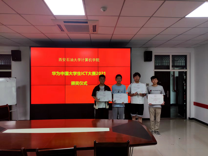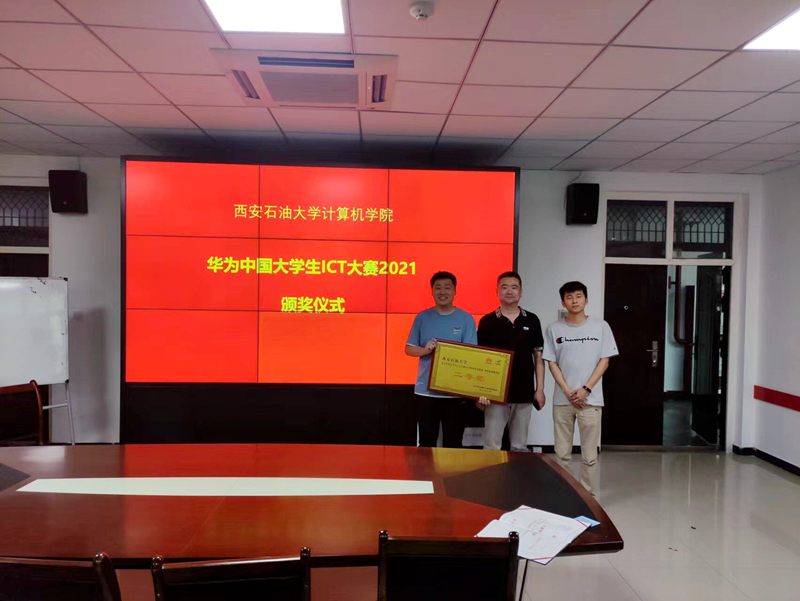 华为中国大学生ICT大赛是由华为技术有限公司主办、宇信教育协办、中建信息赞助、软通动力和泰克教育等协办的、面向全球大学生打造的ICT人才竞技交流赛事。自2021年9月起,本次大赛的初赛从陕西各高校起航,bat365中文官方网站作为参赛高校之一,克服疫情防控的困难,计算机学院通过线上宣讲与辅导、线下实践操作等方式向全体学生宣传本赛事,共派出4支参赛队伍。通过激烈的初赛、决赛比拼,最终计算机学院2019级程晓鹏、2019级任兴兴、2020级肖力斩获“华为ICT大赛实践赛-本科组网络赛道”二等奖。