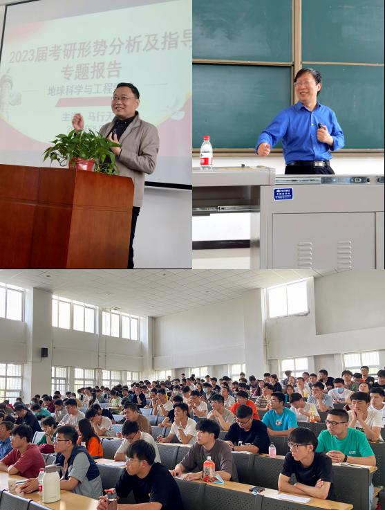 为进一步提高学生考研积极性,营造良好考研备战氛围,地球科学与工程学院于5月20日在鄠邑校区开物楼115教室举办考研形势分析及指导专题报告会,学院党委书记马行天、院长谭成仟、院党委副书记王莹、辅导员刘学斌以及2019级全体学生参加了本次报告会,报告会由王莹老师主持。