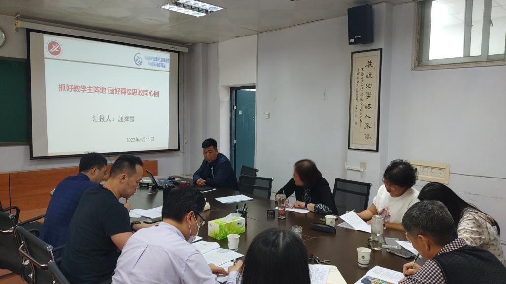 最后,支部书记屈撑囤老师,还结合自己任教30余年的工作经验,为环境系全体党员、教师讲了题为“抓好教学主阵地、画好课程思政同心圆”的专题党课,他从什么是课程思政、课程思政的核心以及如何挖掘与环境专业相关的课程思政元素等方面的内容,并结合自己目前所任教的《石油工业环境污染控制技术》这门课程所挖掘的课程思政内容进行了经验分享交流,就如何上好课程思政,为年轻教师们进行了指导和建议,做好新老教师的“传帮带”。