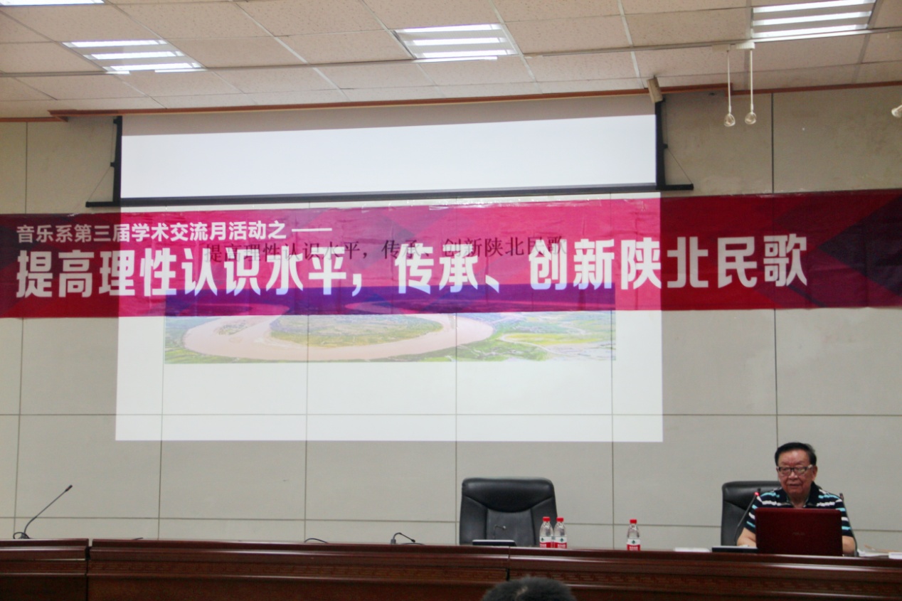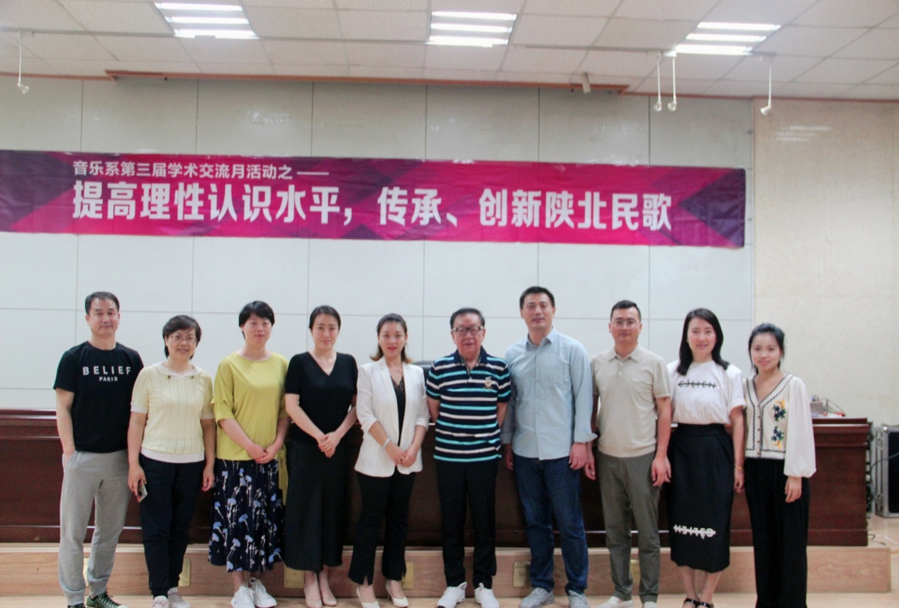 2022年5月6日,音乐系第三届学术交流月之----《提高理性认识水平,传承,创新陕北民歌》在bat365西阶第三会议室成功举办。我系邀请国家一级作曲家、中国音乐学院特聘教授王建民主讲。音乐会按照学校疫情防控要求,进行了线上线下实况直播。系党总支书记孟开元、副主任张帆以及部分教师、学生出席了本场音乐会。
