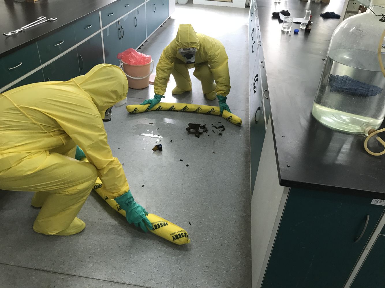 本次演练模拟了实验室内突发丙酮泄漏安全事故,分为人员急救与疏散、事故信息上报、环境污染应急处置、环境监测与现场恢复、演练总结等环节,旨在检验应急处置流程的及时性和可操作性。在演练期间,参与的老师们听从指挥、动作迅速、疏散有序,参演各部门分工明确、协调联动、处置果断。