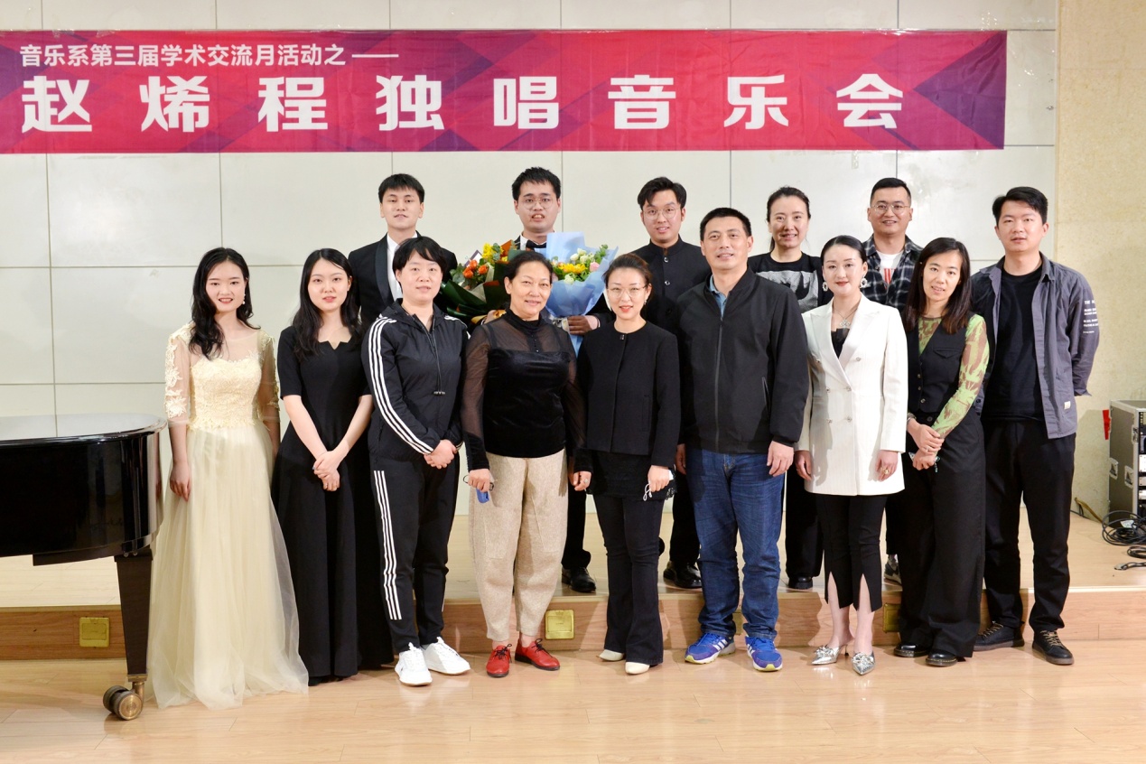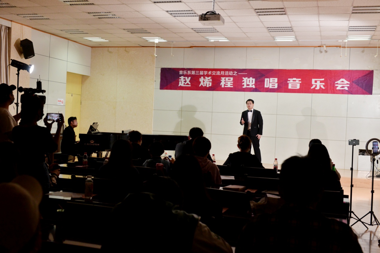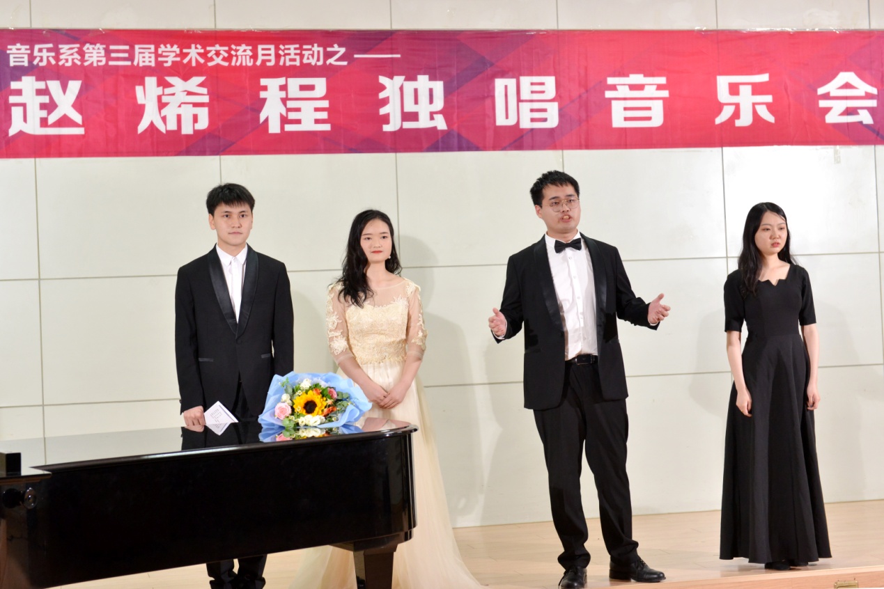 2022年4月28日晚,音乐系第三届学术交流月系列活动——“追寻”2018级本科生赵烯程独唱音乐会在雁塔校区会议中心第三会议室成功举办。音乐会按照学校疫情防控要求,同时在腾讯会议、抖音媒体平台进行了线上实况直播。系党总支书记孟开元、副主任张帆以及部分教师、学生出席了本场音乐会。