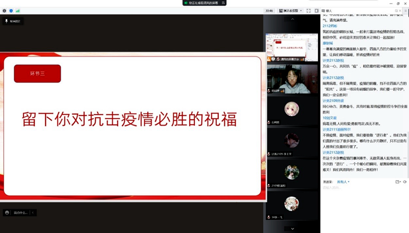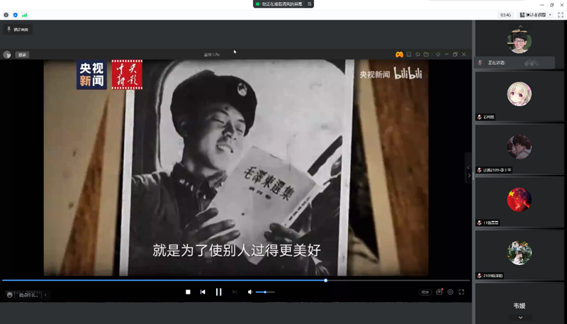 3月18日,我院组织2021级本科生通过线上会议的形式观赏电影《雷锋》(节选),同时邀请了两名参加过志愿抗疫的青年志愿者,根据自己的亲身经历讲述了发生在我们身边的抗疫故事,将雷锋精神与抗疫精神相融合,引导同学们以积极的心态面对新冠肺炎疫情。