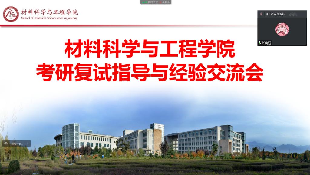 为帮助考研学子充分了解复试信息,掌握复试技巧,提升备考信心。近期,材料科学与工程学院通过线上方式举办了多场考研复试指导与经验交流会。交流会共邀请了7位我院历届优秀毕业生校友分享复试经历和宝贵经验。2018级70余名考研上线学生参加了此次会议,会议由2018级辅导员赵飞老师主持。