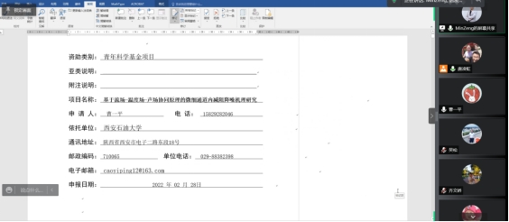 为进一步加强2022年度国家自然科学基金申报工作,机械工程学院能源动力系邀请西安交通大学能源与动力工程学院三级教授曾敏老师分别于2022年3月5日和3月13日为机械工程学院部分教师就2022年度国家自然基金申请书的撰写进行了指导。曾敏教授结合自身的专业背景和多年申报国家自然科学基金项目以及评审基金申请书的经验,从项目的选题、创新点的提出、科学问题的凝练、关键技术的说明等几个提高基金命中率的关键问题展开细致深入的阐述。同时曾敏教授还建议各位教师尤其是年轻教师一定要结合自己拟申报项目的背景,反复凝练科学问题、深入思索创新点,加强与同行专家的交流并听取同行专家的意见,努力提高项目申报质量。