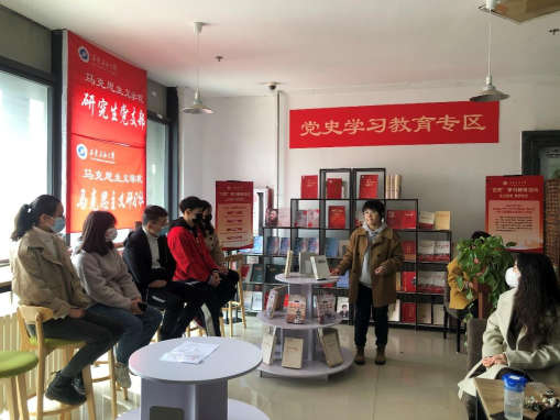 3月2日上午,bat365中文官方网站马克思主义研习社联合马克思主义学院研究生第一党支部在鄠邑校区马列书屋共同开展了“深化四史教育,坚定理想信念”党史学习教育师生联学活动。活动由马克思主义学院研究生第一党支部马定坤同志主持,研习社张莉老师现场指导,研习社成员及支部全体党员20余人参加活动。