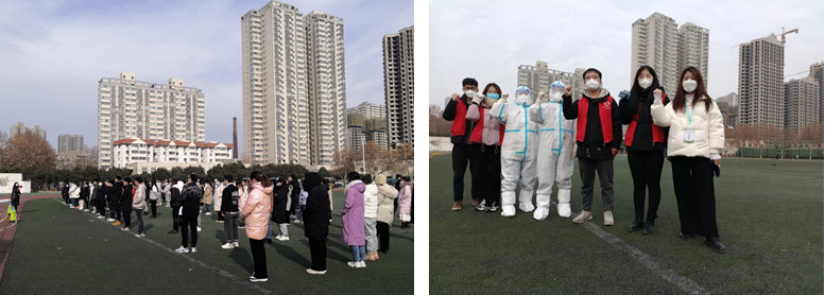 本轮疫情防控中,通过核酸检测能够及时发现病例、快速摸清底数、阻断病毒传播的重要手段。封校以来,学校对在校全体师生员工进行了多轮次的核酸检测,此项工作量大,任务紧,时间要求急迫,为了确保师生安全,协助学校快速有序、按时完成检测工作,化学化工学院共派出10余名研究生志愿者,承担核酸检测时维持现场秩序以及预检组等相关工作任务,及时引导广大师生安全有序做好检测工作。