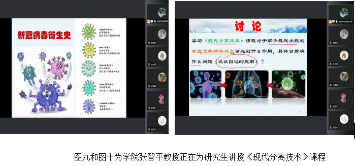 特别值得一提的是,化学化工学院专业课授课老师都在线上课堂一开始时,结合当下疫情防控,深挖思政元素,给研究生介绍有关冠状病毒和抗病毒药物的知识,让同学们学习了新型冠状病毒的特点、防控重点工作、药物研发与使用现状等知识。