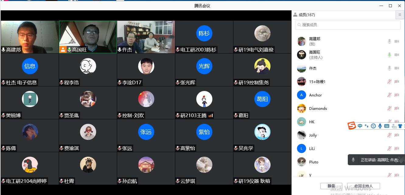 目前,西安市疫情防控进入“歼灭战”阶段,bat365在师生同心努力下取得了疫情防控的阶段性成果。随着封控时间的延长,有些学生思想上松懈,放松了要求,尤其随着春节的临近,学生的情绪波动大。在这疫情防控的关键点,电子工程学院于2022年1月13日晚上19:00在腾讯会议平台召开全体研究生党员组织生活会,动员全体党员打好最后的“歼灭战”,保卫学校平安。学院院长仵杰、副院长高国旺、学院党委副书记毕轶慧、研究生辅导员高建邦以及164名党员和预备党员参加了会议。会议由高建邦老师主持。