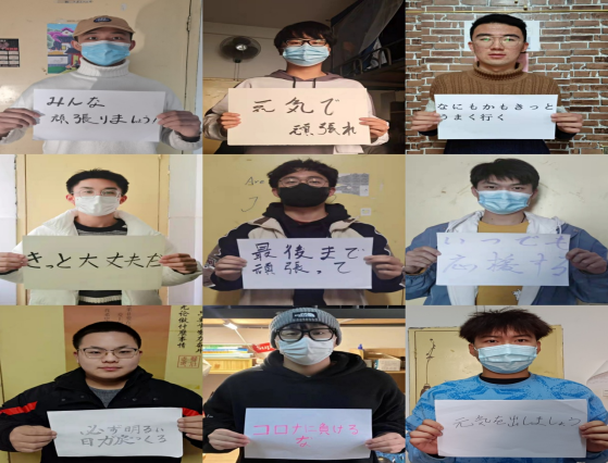 疫情当前,在这场没有硝烟的战争中,一幕幕动人的画面,一个个感人的故事,凝聚了无坚不摧的中国力量,诠释了逆行而上的中国精神。这样的中国力量,需要广大青年大学生传承和发扬光大。陈旭老师给学生布置的本堂课课后作业也是从“西安疫情”这一特殊背景出发,让同学们结合本堂课所学“表示感叹”和“表示赞叹”的句型及生词,每个人用日语来说一句加油打气的话,并且亲手制作加油打气的卡片。一方面展现bat365学子在疫情期间仍然积极面对这一良好的精神风貌,同时也用到所学语言知识,为身边的人加油打气,传递正能量。