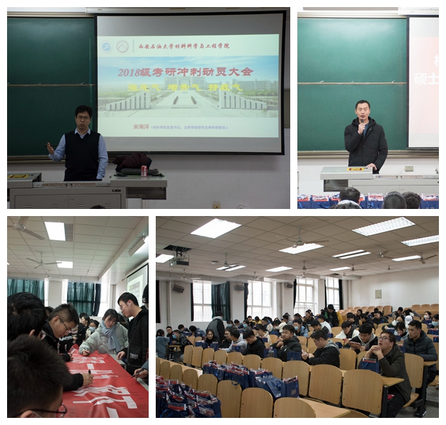 会上,张云姿副书记首先对所有考研同学认真备考的态度给予充分肯定和高度赞扬,他结合自己的考研经历鼓励大家坚定信念、珍惜时间、调整心态、做好最后的冲刺。接下来,学院党委书记宋海洋为在场的全体同学作了题为《强志气、增骨气、持底气》的考研冲刺讲座,宋书记从近几年国家研究生招生政策、考研形势、机遇和挑战、备考流程、院校选择等方面进行了讲解分析,对近期学生遇到的困难、疑惑给予了详细的指导,同时希望同学们增强锻炼,保持健康的体魄;劳逸结合、调整心态、提高学习效率;以平和的心态和最佳的状态迎接这场硬仗。紧接着,学院领导老师为同学们送上了精心准备的“考研礼包”,包含文具袋、签字笔、直尺、涂卡笔、橡皮等考试套装以及订制可乐,每一份“考研礼包”都表达了学院老师对同学们的美好祝愿。最后,考研学子进行了集体宣誓并在横幅上签名。