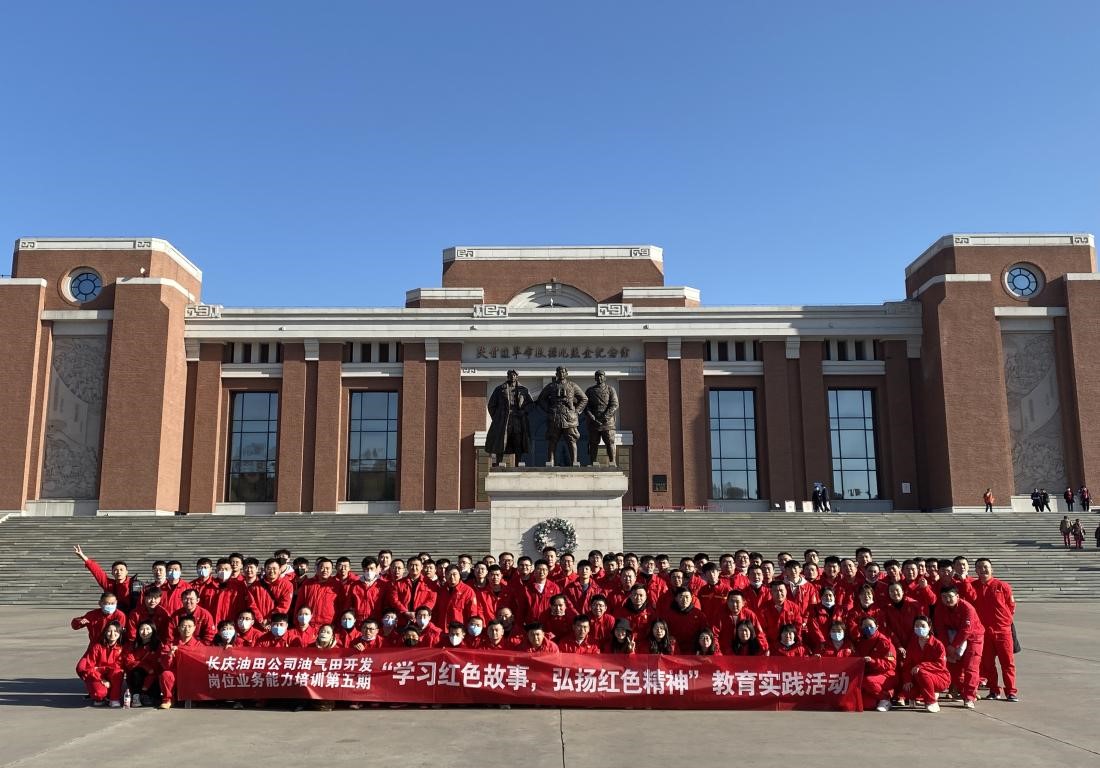 12月9日上午,在继续教育学院党总支的安排和组织下,长庆油田分公司油气田开发岗位业务能力培训班(第五期)全体学员,到达陕甘边革命根据地照金纪念馆参观学习,开展“学习红色故事,弘扬红色精神”主题党日活动。