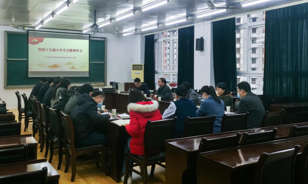 12月3日下午,计算机学院在雁塔校区东方石油楼402会议室召开党委理论学习中心组扩大会议,集中学习研讨党的十九届六中全会精神。学院党政领导班子成员、科级干部、教工党支部委员参加,党委书记李强主持会议。