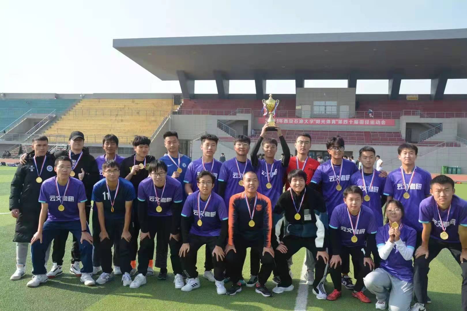 近日学校“联赛杯”男子足球决赛在鄠邑校区西田径场场举行,我院足球队与体育系队展开冠亚军的角逐。最终以点球大战2:0荣获“联赛杯”男子足球赛冠军,取得学院历史最好成绩。
