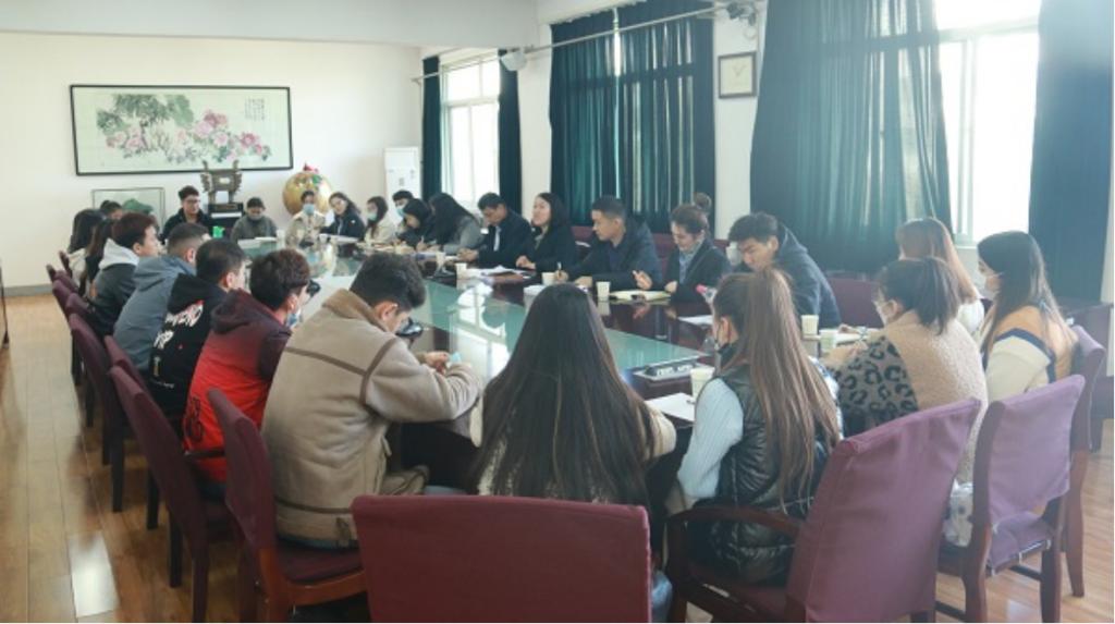 学生工作部部长王亮对教育协调小组的到访表示欢迎,对协调小组给予学校工作的关心、支持和指导表示感谢,并介绍了学校的办学特色和相关工作开展情况。庞秉谦副部长汇报了学校少数民族学生教育管理服务工作情况,介绍了开展少数民族学生学业指导、资助帮困、就业帮扶、心理辅导、生活服务等工作的基本经验、做法和成效,重点介绍了“丝路文化节”“民族团结进步月”系列活动在促进民族团结进步、铸牢中华民族共同体意识方面发挥的积极作用。