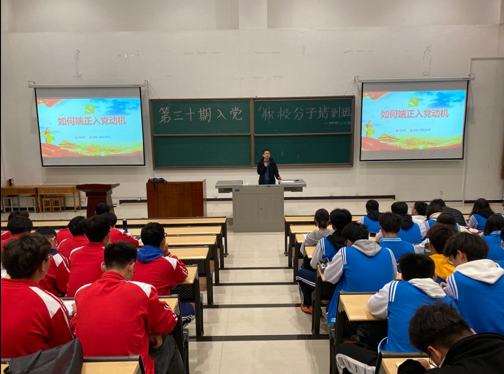10月10日,在机械材料楼115组织了第三十期入党积极分子培训班开班典礼暨第一讲,院党委副书记张云姿为全体积极分子进行开班典礼致辞。校党校副校长、学生工作部部长王亮老师以 “感悟思想伟力,坚守初心使命-深入学习习近平总书记“七一”重要讲话精神”为题,从中国共产党百年奋斗的光辉历程,中国共产党百年奋斗的历史启示,昂首迈向第二个百年奋斗目标等三个方面为同学们讲授第一课。王老师以建党百年来创造的“四个伟大成就”和向世界做出的“四个庄严宣告”为主线,揭示了“伟大建党精神”的丰富内涵,并要求同学们要进一步深入学习贯彻习近平总书记“七一”重要讲话精神,知行合一,增强“四个意识”,坚定“四个自信”,做到“两个维护”,用实际行动践行新时代青年学子的使命与担当。