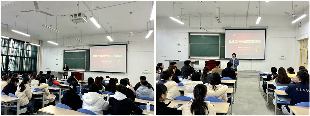 11月10日中午,计算机学院在鄠邑校区B区教学楼B101教室对学生党建办公室所有成员进行培训。学生工作办公室主任乔晓、2020级辅导员刘亭普、兼职辅导员孙旭华、学生党建办公室成员及各学生党支部委员会成员参加。本次培训由学院党建组织员路婷老师主讲。
