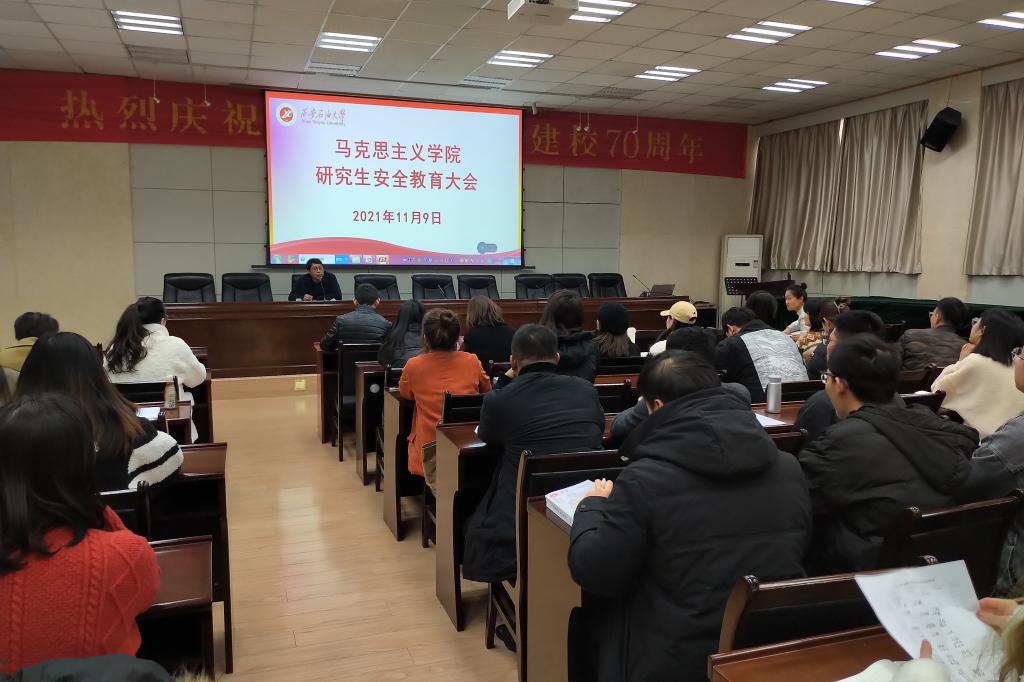 为贯彻落实学校安全工作会议精神,加强对研究生的日常管理,提高学生安全防范意识,引导学生树立规矩意识,营造健康、稳定的校园氛围,马克思主义学院分别于11月8日在鄠邑校区,11月9日在雁塔校区召开了研究生安全教育大会。