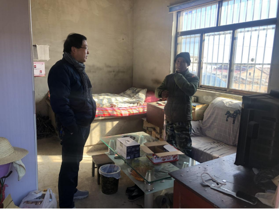 在帮扶对象殷小军家,蔡建文书记关切询问其家庭日常生活及子女工作情况,并详细了解今年农作物收成及过冬物资储备情况。殷小军表示,在政府惠民政策的支持以及学院的长期帮扶下,全家的生活有了极大改善并顺利脱贫,目前子女在外打工,家庭经济状况也有了较大缓解。蔡书记勉励殷师傅要继续巩固脱贫成果,学院也将持续落实帮扶政策,进一步帮助殷师傅一家寻找致富途径。