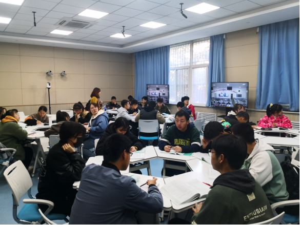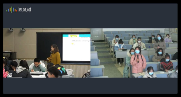 在直播式互动课堂,张磊老师同时为两校的学生讲解“Heroes among us”。她像往常一样,真诚自如地给学生们上课,时不时地抛出问题让大家参与讨论。在她看来,课堂上没有“远在天边”和“近在眼前”的区别。无论是身边的西石大同学们,还是在屏幕里喀什大学的同学们,无疑都沉浸在这堂有趣的课堂里,在知识的海洋里自由翱翔。