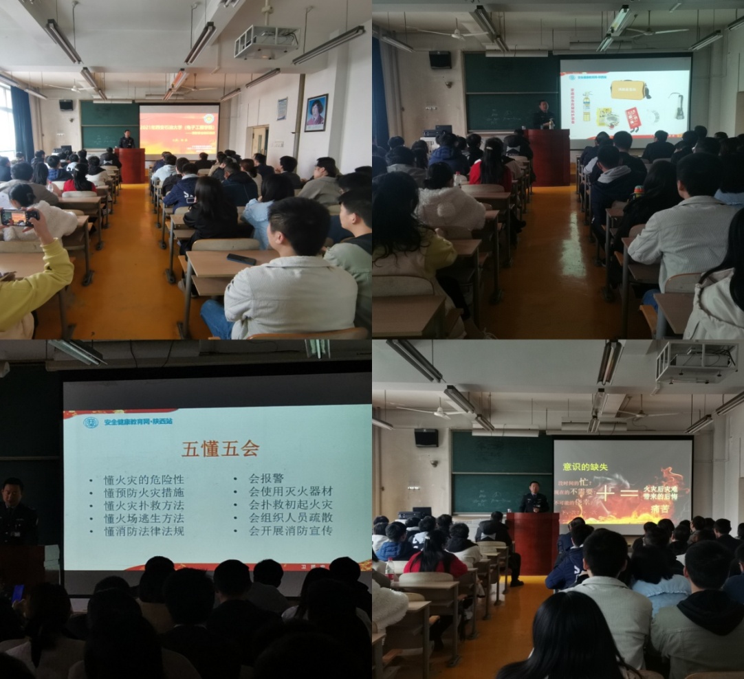 会上,张晶教官通过消防知识讲解、实物演示、案例回放等多种形式,结合自己多年来工作实践经验,从消防安全“四个能力、五懂五会”,遇紧急突发情况时如何组织人员进行安全疏散,实验室、家庭等重点防火部位的注意事项及应急处理等相关内容进行了详细讲解;现场还对消防设备进行了演示。