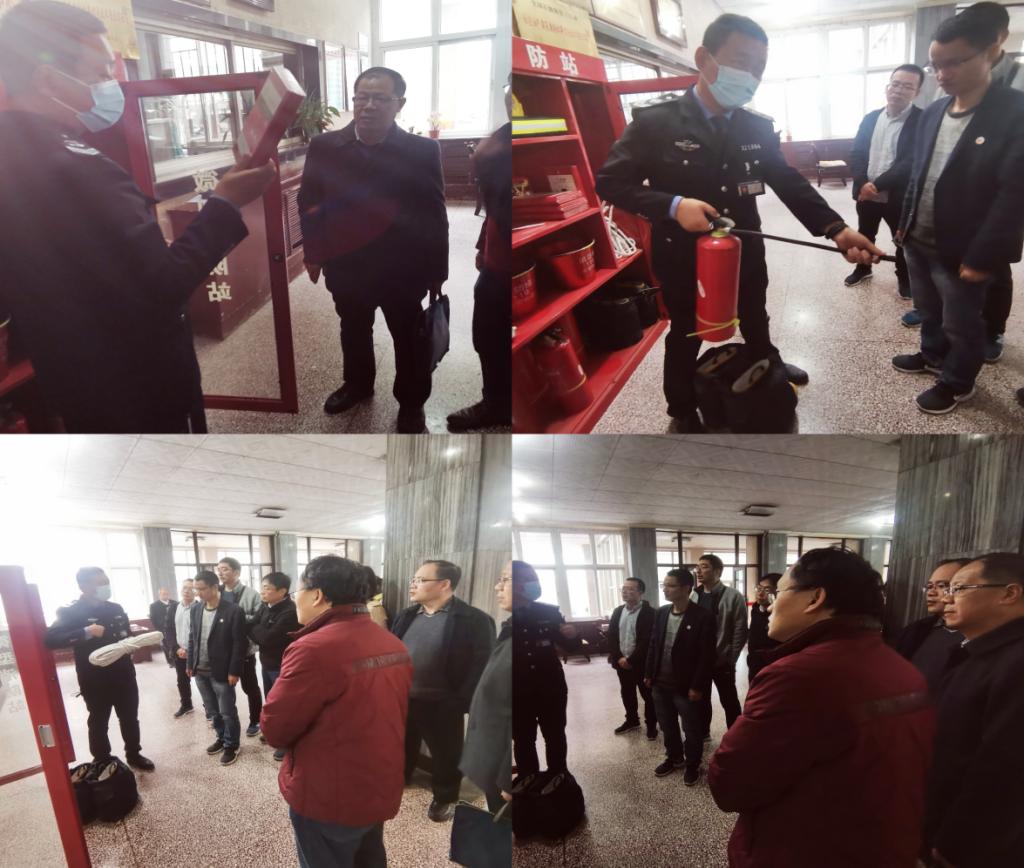会后,仵杰院长、高国旺副院长、各科研实验室安全员跟随张晶教官前往1号教学楼大厅对微型消防站里摆放的日常消防器材具体用途、正确使用方法步骤进行了详细讲解和现场操作。