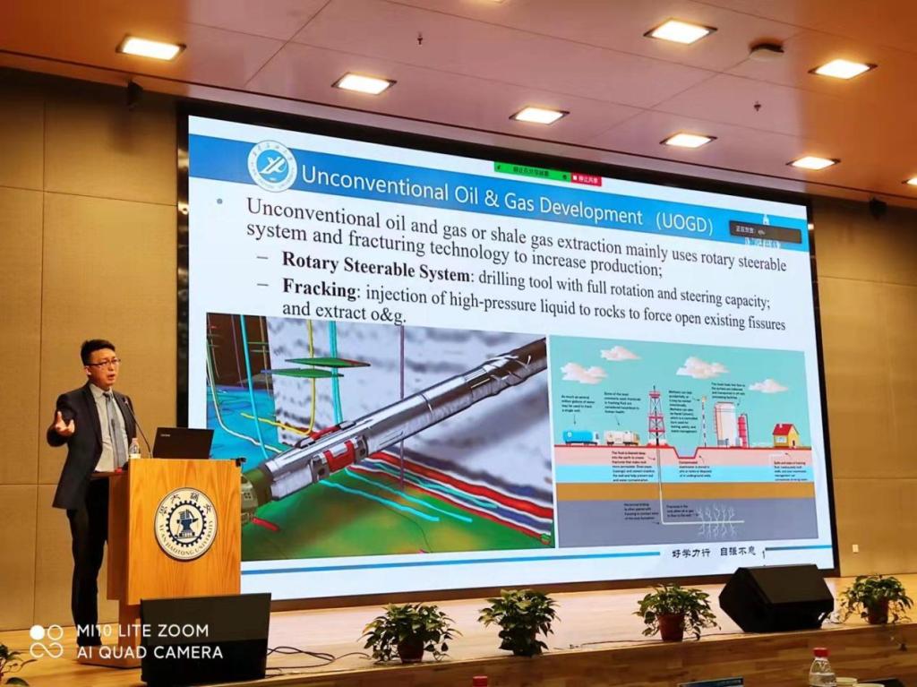 研讨会上,bat365电子工程学院李飞教授代表学校作了以“益于碳减排的先进钻井技术在油气勘探中的发展”的主旨报告。李飞教授以精确的图表、翔实的数据、充分的例证和精辟的分析,系统阐述了旋转导向钻进系统作为一种先进钻井技术,可显著提高钻井效率,大幅减少能源勘探的碳排放,实现绿色勘探开发油气资源,代表了当今石油钻井技术发展的重要方面。李飞教授的报告以渊博的学识、专业的精神和独到的见解,得到与会学者的高度评价。