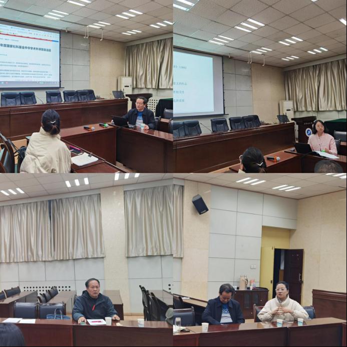 接着,刘副院长对2022年度国家社科基金项目做申报动员及重点部署。她指出,国家社科基金项目申报关乎学院的学科发展与学位点建设,对教师及团队来说也是一个磨练、学习、积累经验的过程,对提升科研能力大有裨益,要求大家尽快结合学科高频关键词及热点问题,着力在选题上下功夫,明确研究方向,做好前期准备工作,并认真学习申报指南,反复打磨申报书,切实提高申报质量。同时,刘副院长表示,学院将继续以国家社科申报工作为抓手,全面支持教师开展科研工作,提升科研能力,在项目申报管理中充分发挥指导作用,聘请校内外专家开设相关讲座,一对一指导申报书的撰写和修改,进一步提高申报书质量。