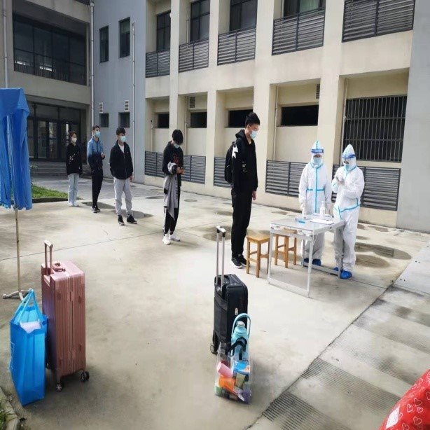 二是用心服务,做好两校区集中隔离区域的医疗服务管理工作。疫情发生以来,校医院负责的两校区隔离区域一直处于运转启用状态,主要接收从中高风险地区返校的师生或密接人员的隔离管理,高峰时段入住人数超过120多人。职责所在,使命所然,校医院在两校区隔离室安排专门医务人员,成立后勤、保卫人员在内的工作专班,连续无休息坚持工作,保证集中隔离观察点24小时安全有序运转。在隔离区,管理人员严格实行封闭式管理,除了做好健康监测、医疗服务、核酸检测、处理突发医学事件和环境消毒等日常工作,更像一个24小时医疗后勤管家,贴心、周到地为隔离观察期间的同学们提供温馨的保障服务。大多数隔离观察人员刚被隔离时,或多或少都心存顾虑,但在隔离点工作人员的精准管理和精细服务下,均放下顾虑,安心隔离,让同学们感受到了家人般的温暖。每到解除健康观察,临别时总有同学说一句辛苦,道一声感谢。