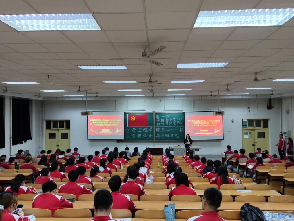 10月26日晚,电子工程学院第二十一期入党积极分子培训班开班典礼暨党课第一讲在鄠邑校区A239教室举行,校党委巡察办公室主任覃彪、电子工程学院党委副书记毕轶慧、全体辅导员以及学院本科生、研究生共98人参加,本次活动由院团委书记、学生管理办公室主任钱宇航主持。