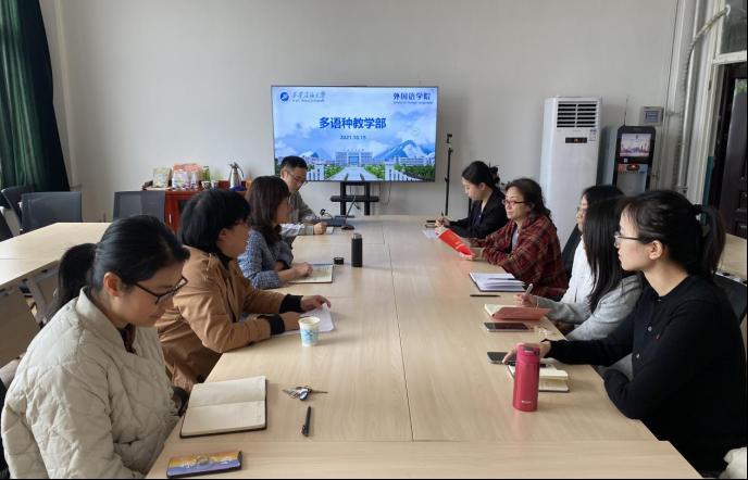 多语种教学部副主任陈旭老师介绍了多语种教学部的基本情况,要求各位教师积极扩宽视野,将课程思政知识融入语言课程,积极开设相关的通识教育选修课,为教学和科研打好基础;要踊跃尝试,跳出舒适圈,扎实开展科研工作,踊跃参加竞赛。他表示,多语种教学部将积极研究形成有效的考核及鼓励机制,充分调动每位教师的积极性和创造力。与会教师就多语种教师教学、科研、竞赛以及未来个人发展方向、学院建设等多方面的内容展开了激烈的讨论,提出了自己的意见和建议。