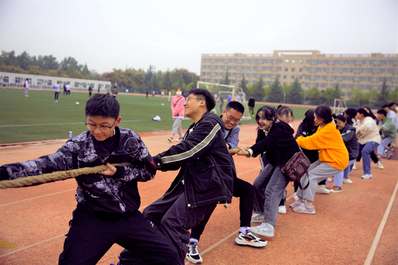 本次活动以“挑战自我、齐心协力”为主题,分为“50米往返跑”、“拔河比赛”和“绑腿跑”三个比赛项目展开。同学们积极参与并用饱满的热情在赛场上不断地挑战自我,取得了令人骄傲的成绩。随着活动的进行,同学们在共筑团队之魂的同时,每个队员都找到了自己的归属感,明确了自己的团队目标,并为之全力以赴,增强了队伍的团结合作的精神。