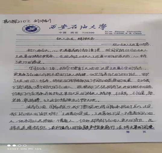 理想信念教育不仅是培养中国特色社会主义事业建设者和接班人的时代要求,更是实现中华民族伟大复兴中国梦的迫切需要,大一新生理想信念教育是引导、激励、凝聚大学生成长成才的重要抓手,是系好人生第一粒扣子的关键环节。我院新生理想信念教育以“铁人精神”教育为主要切入点,在B区教学楼组织新生开展了《铁人王进喜》的观影活动,并积极组织撰写了心得体会;党委书记马行天在鄠邑校区弘石报告厅为新生做了“坚定理想信息,做好大学规划”的主题讲座;党委副书记王莹在弘石报告厅向新生做了学校发展历程和学院优良传统的主题报告,经过理想信念教育,同学们逐渐明白要将小我融入祖国和人民的大我之中,才会更好的实现人生价值。