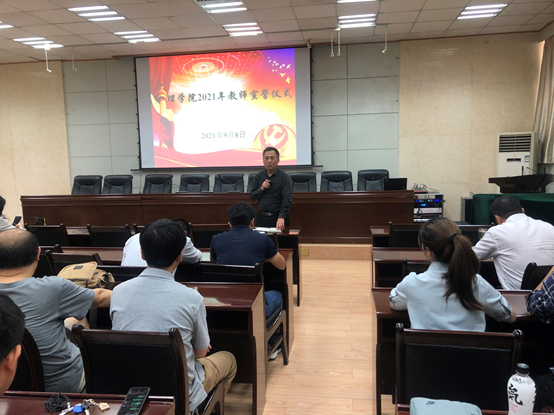 9月8日下午,理学院在雁塔校区西阶第三会议室隆重举行了教师节宣誓活动,全院教师共计90余人参加了本次活动。宣誓活动由理学院党委书记廖敏主持。