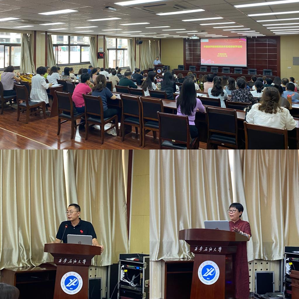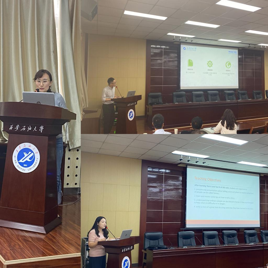 教学观摩前,教务处副处长吴勋和外国语学院院长于艳英分别从国际形势,外语教学等方面强调了课程思政的重要性做了讲话。教学示范观摩活动特邀请我院在bat365中文官方网站课程思政大练兵竞赛获得二等奖的周晓寒老师和在bat365中文官方网站青年教师教学竞赛一等奖的陈旭老师以及在“外教社杯”全国高校外语教学大赛陕西赛区三等奖苗旸老师为大家做课程思政展示,老师们在教学活动中将中外文化相结合,把课程思政融入到外语教学中,引导学生用外语讲述中国故事,用外语传播中国文化。