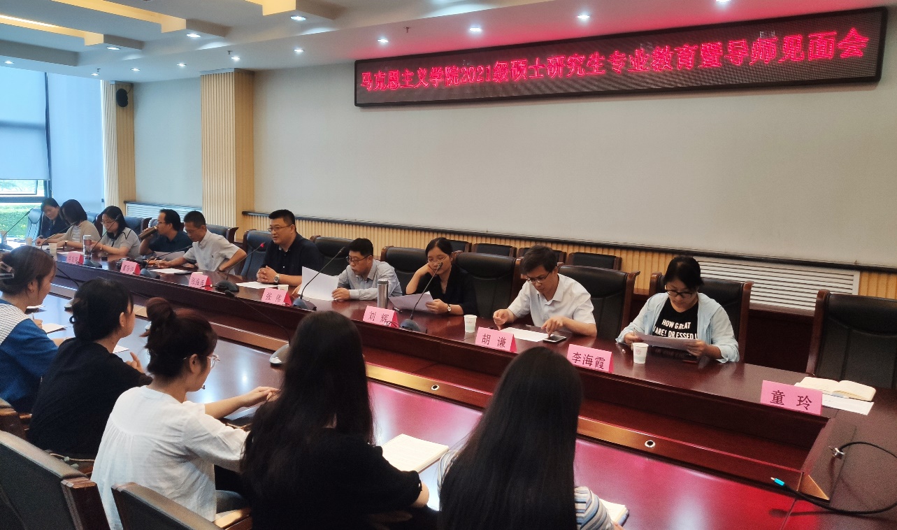 9月1日下午,马克思主义学院2021级研究生专业教育暨导师见面会在鄠邑校区图书馆第二会议室顺利举行。会议由张海涛院长主持,学院党总支书记张伟、副院长董春诗、刘辉教授、郭艳英副教授等10位老师参加了会议。