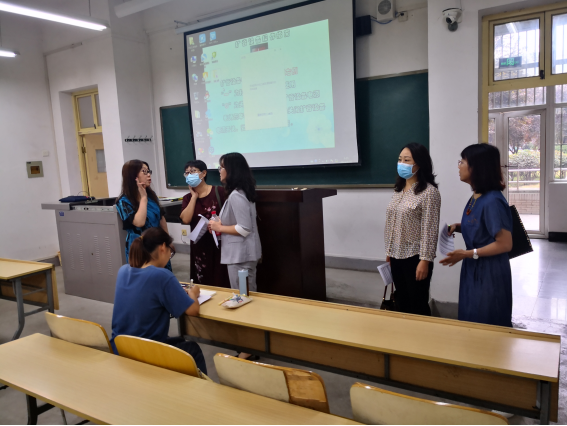 8月30日是秋季开学第一天,为强化教学管理,在做好疫情防控工作的前提下,确保教学秩序稳定,外国语学院党委书记田虹霞、院长于艳英,副院长刘辉、陈武以及大学外语教学一部主任李雪梅老师深入课堂教室、翻译实验室、语音室等教学场所,了解教学运行情况,查看课堂教学秩序、学生上课出勤率、授课计划、教学环境等,同时对教室管理、课表编排、线上线下教学衔接等问题提出了要求。