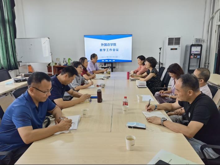 大学外语第二教学部主任彭健、李红于8月21日召集各级课程组负责人召开线上会议,认真学习学校2021年秋季学期本科教学工作方案。会上,大家就教学方式,教学内容,教学环节展开了深入的讨论。针对因疫情等原因不能到校的学生,最终商定给这部分学生采取慕课加线上答疑的形式。会后,B级课程组负责人王红,毕莹立刻着手准备教学文件和资料,为线下教学做好准备。同时进行线上统计并和任课老师确认不能到校名单,确保每位未能报到的同学的学习进度。