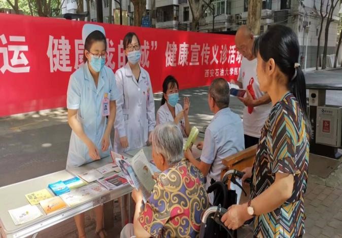 一是开展校园健康宣传义诊活动。在第十四届全运会即将召开之际,为了助力十四运精彩、圆满举办,营造支持全运、参与全运、服务全运的浓厚氛围,并推动学校医疗资源下沉,方便群众在家门口看病就医,7月24日,校医院在雁塔校区开展了校园健康宣传义诊活动。活动当天,参加义诊的医护工作人员不惧酷热,对前来义诊的师生或家属进行热心问诊,并根据他们的健康状况一一地提出一些专业的治疗建议和健康指导。活动现场,工作人员还免费为大家检测血压、血糖等,发放医疗宣传手册,积极普及新冠疫苗接种等医疗知识和健康生活理念。本次义诊活动得到了广大师生、家属的热烈欢迎和广泛好评。