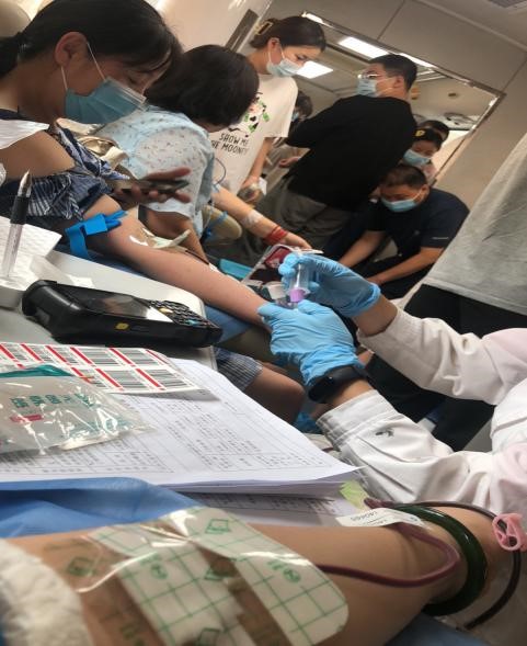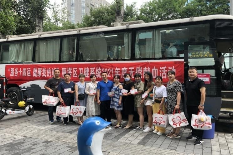 三是弘扬“敬佑生命、救死扶伤、甘于奉献、大爱无疆”的奉献精神,组织开展服务十四运卫生健康系统无偿献血活动。7月23日下午,在校医院党支部书记刘胜勇的带领下,校医院党员干部群众等一行12人来到小寨飞炫广场的流动献血车进行了无偿献血活动。本次参加自愿献血的均为校医院的医务工作者,他们积极响应政府号召,以身作则,率先垂范,用实际行动支持全运、服务全运,关注并参与着国家的无偿献血事业。献血活动完成后,他们当中有人自豪地说:“能用自己的热血帮助那些急需帮助的人,让他们重获健康,是医务工作者的荣幸,更是医务工作者义不容辞的责任。”