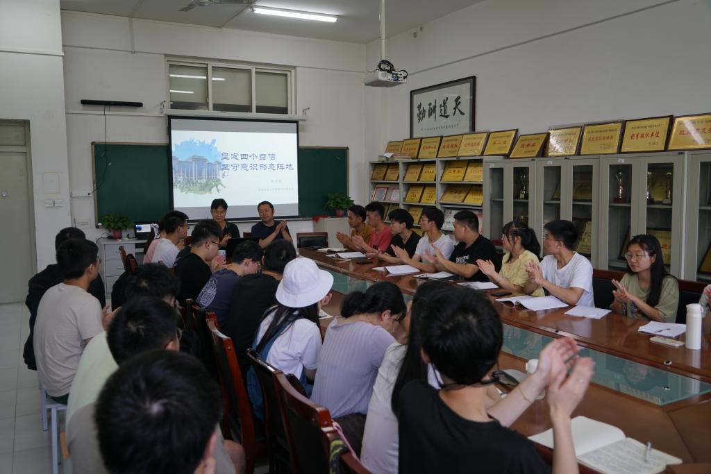 李孝祥老师首先强调了筑牢高校意识形态阵地的重要性与紧迫性,指出强力筑牢意识形态工作前沿阵地是一项战略工程、固本工程、铸魂工程,事关全面贯彻党的教育方针,事关中国特色社会主义事业后继有人。接着,李老师从坚定“四个自信”牢牢把握意识形态工作的主动权入手,以近期西方媒体的部分不实报道为例,向大家澄清报道中的矛盾与错误。针对西方媒体对中国疫苗等问题的无端指责,李老师列举事例,阐明我国坚持“人民至上、生命至上”原则,积极推动构建人类卫生健康共同体的大国担当。最后,李老师鼓励党员师生发挥先锋模范作用,敢于斗争、敢于胜利,主动澄清模糊认识、划清是非界限,努力成长为又红又专、德才兼备、全面发展的中国特色社会主义合格建设者和可靠接班人。