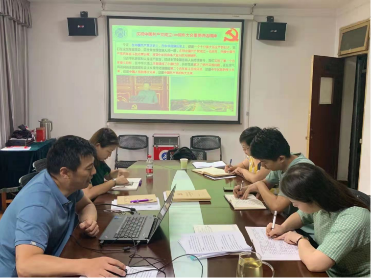7月6日上午在音乐系楼会议室,音乐系理论学习中心组开展深入学习习近平总书记在庆祝建党100周年大会上的讲话暨专题研讨。会议由音乐系党总支书记孟开元主持,系副主任张帆、党总支委员白雨可、专职组织员邓云刚、办公室主任王海燕参加。