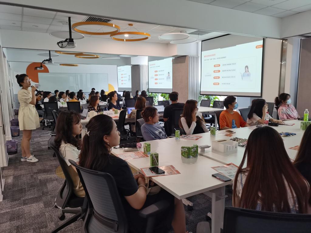 首先,猿辅导的校招经理乔艳和HRBP陈紫怡在会议室欢迎了老师和同学们的到来。陈老师就猿辅导公司目前的发展状况、招聘职位、薪资待遇、休假制度、在职人员等情况为同学们作了详细介绍。2019届校友穆普图拉·木合塔尔老师与同学们分享了自己的求职经历和在猿辅导的工作经历,给同学们提出了很多切实的建议。接下来盛书记与范老师也根据自身经历为同学们传授了求职经验,希望同学们可以根据自己的专业、特长、爱好等进行职业选择,规划好自己未来的职业道路和就业方向,希望同学们多锻炼、多积累经验,善于抓住一切机会,迎接挑战。